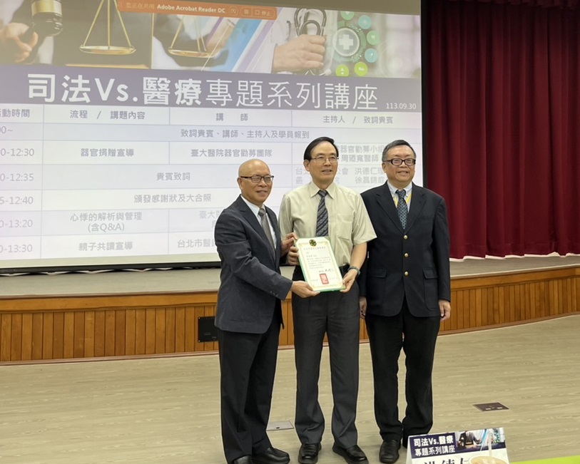 本次講座為本法人與台北市醫師公會、中華法學會共同舉辦7場的「司法vs醫療專題系列講座」健康醫療主題壓軸場!